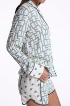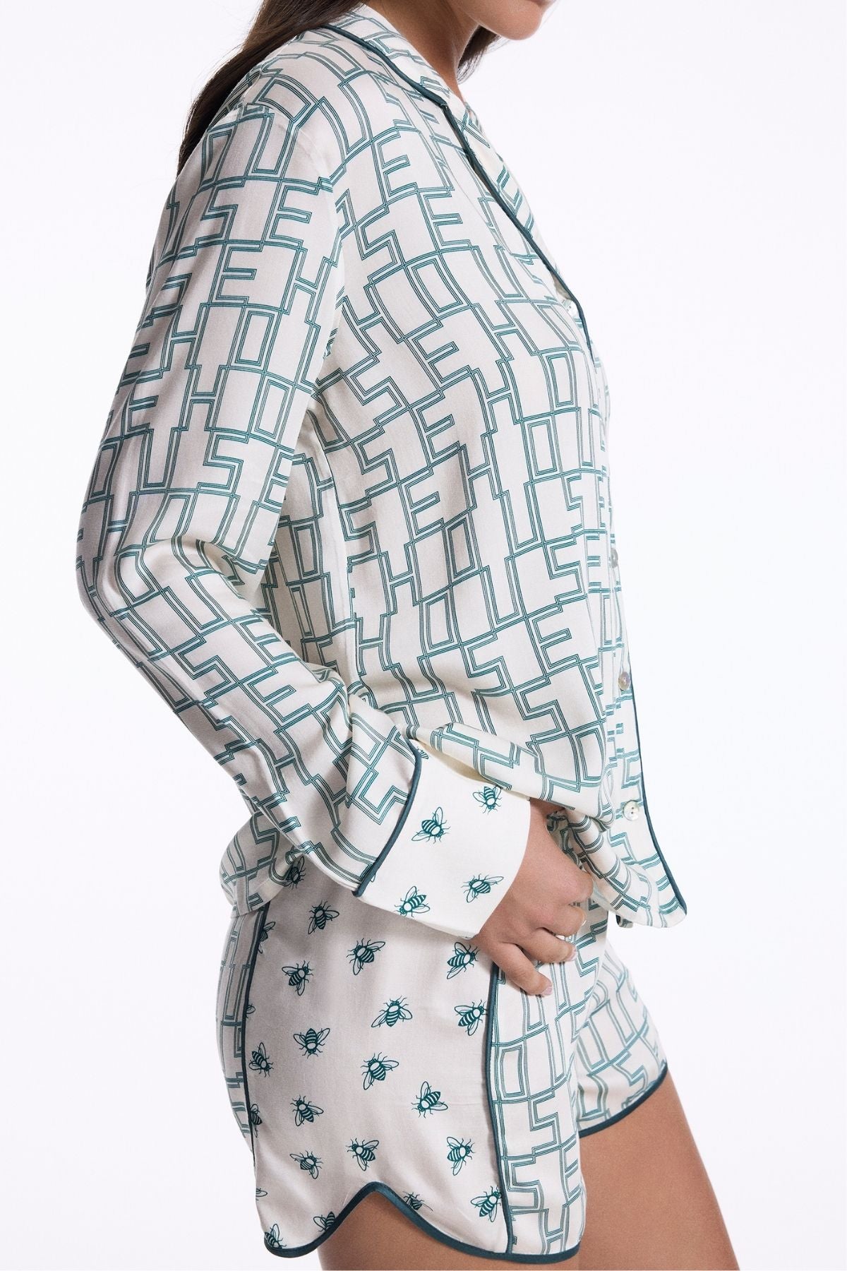 With contrast piping and glossy buttons, Honeybee brings subtle elegance to a timeless silhouette. The fully patterned fabric and relaxed shirt-and-short design turn your at-home moments into something effortlessly stylish.