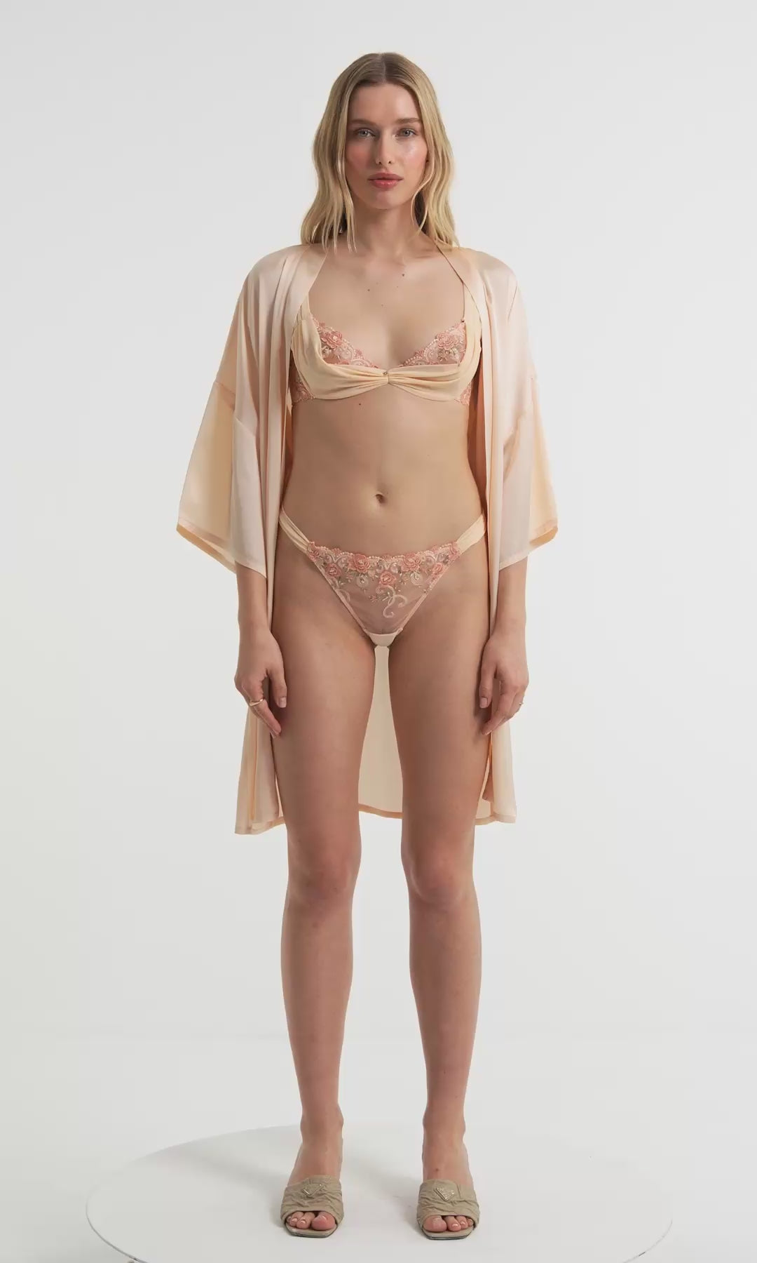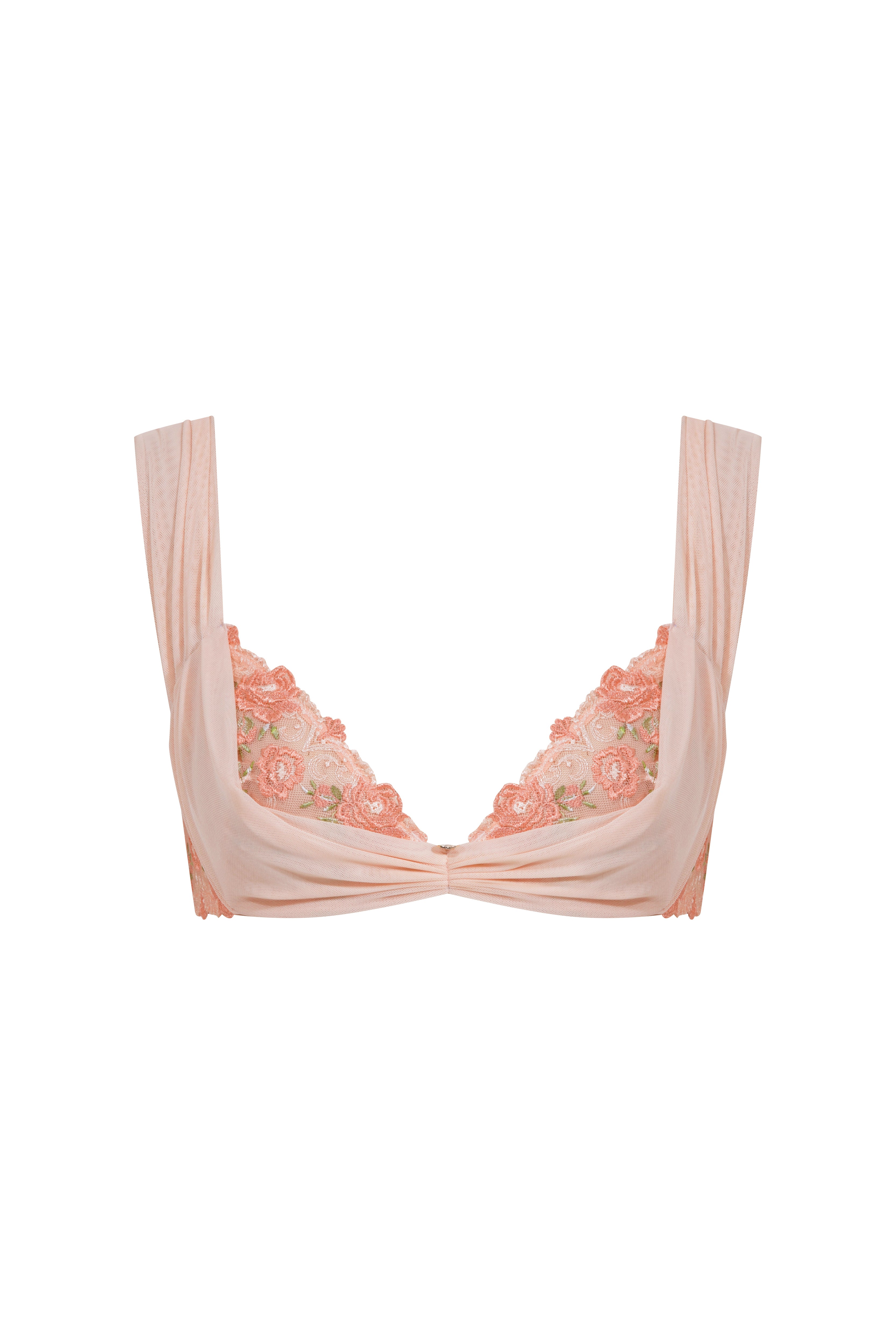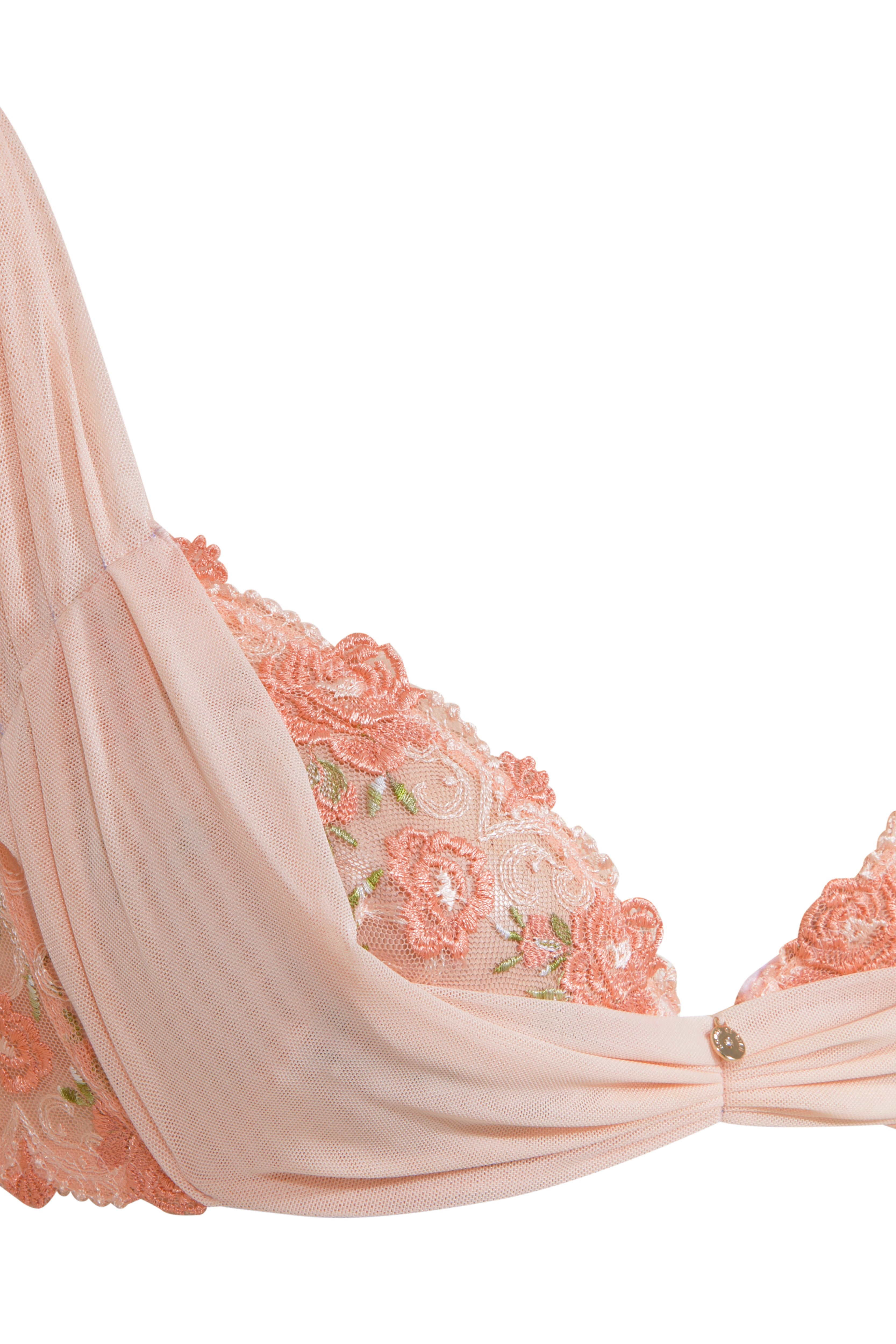 Florina Lace Tulle Bra Salmon is as elegant and charming as if it came from another land. Its soft floral lace combines with salmon tulle to create a light and elegant look. You can create a perfect set by completing your look with Florina Thong.