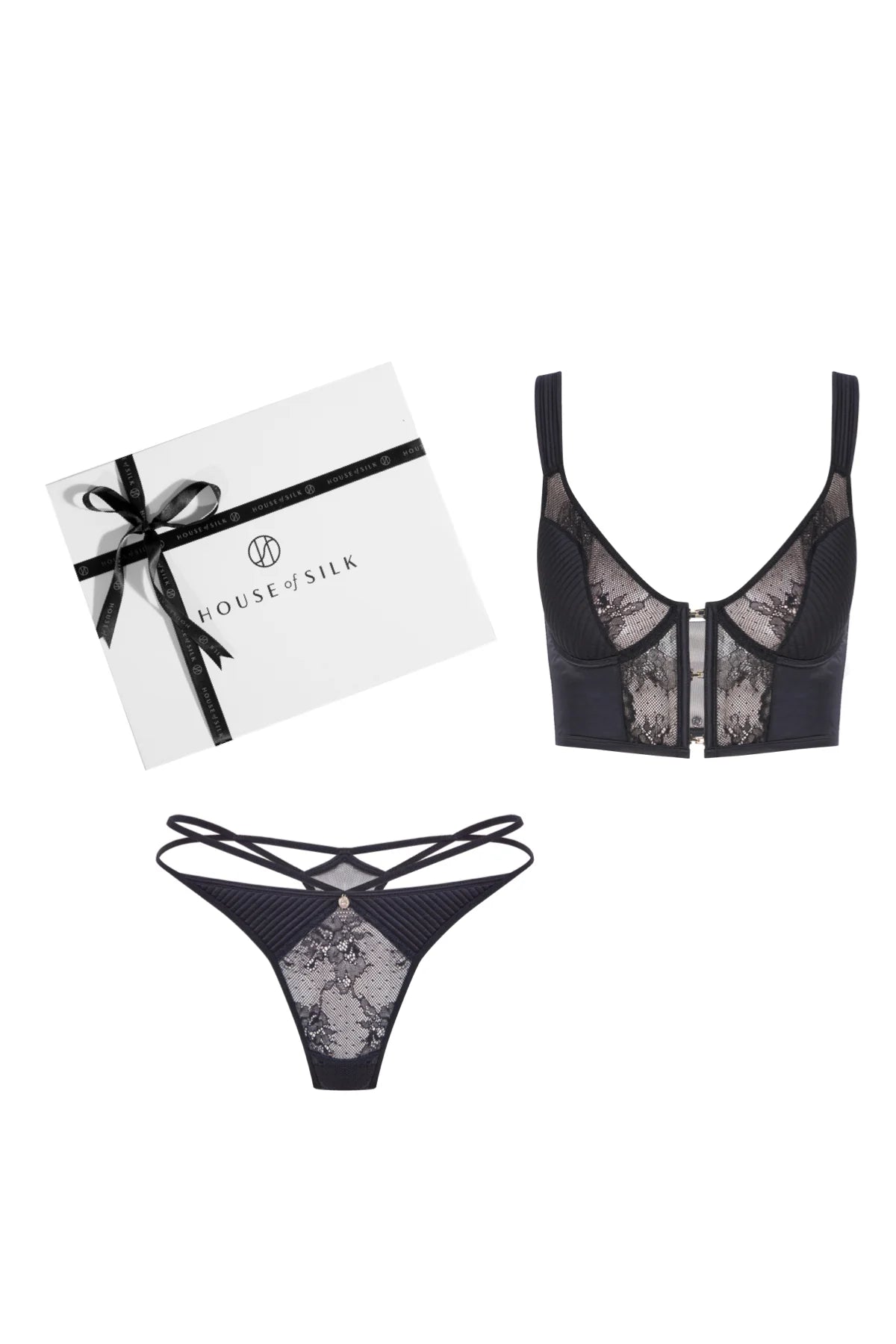 The Estelle Lace Set embraces the body with side ribbing details, offering a balanced, sculpted form. Designed to make you feel special—both in your everyday looks and your most intimate moments. Pair it with jeans for a sensual daytime statement, or wear it alone for a bold expression of confidence.