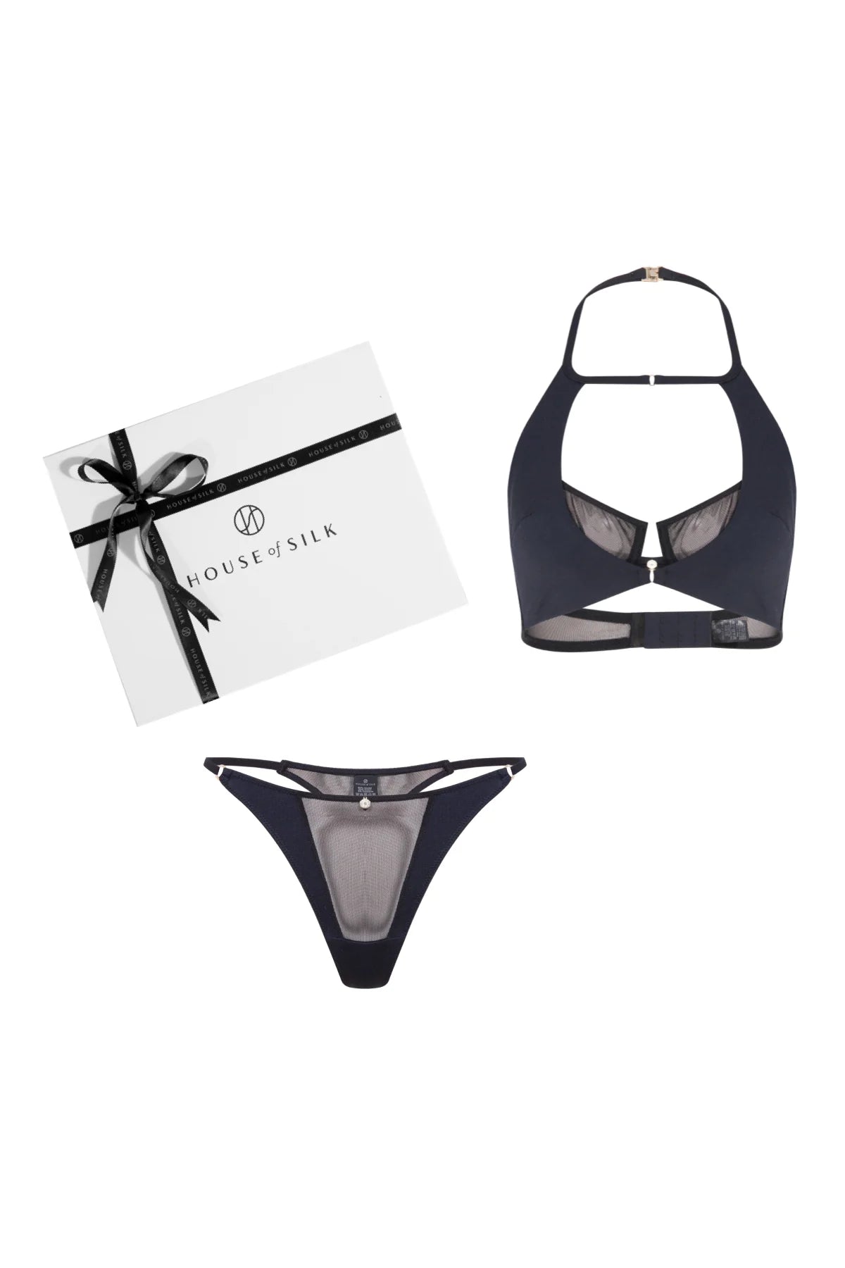 The Judith Soft Set features a halter neck bra and matching thong, offering a bold yet refined expression of modern femininity. With its delicate texture and striking silhouette, it accentuates your style while embodying strength and effortless elegance — a set that’s captivating from every angle.