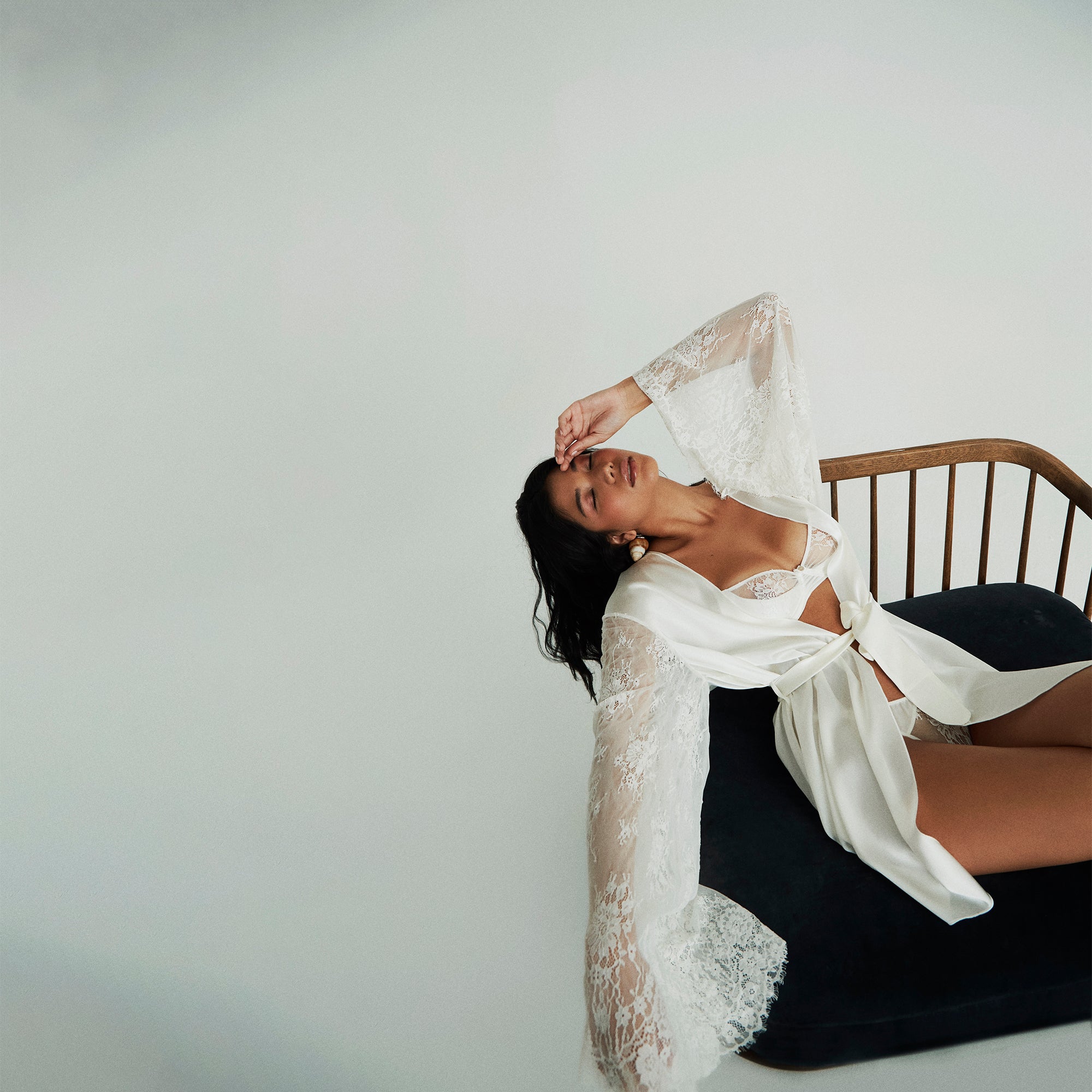 The model wears a size 75B / Small.