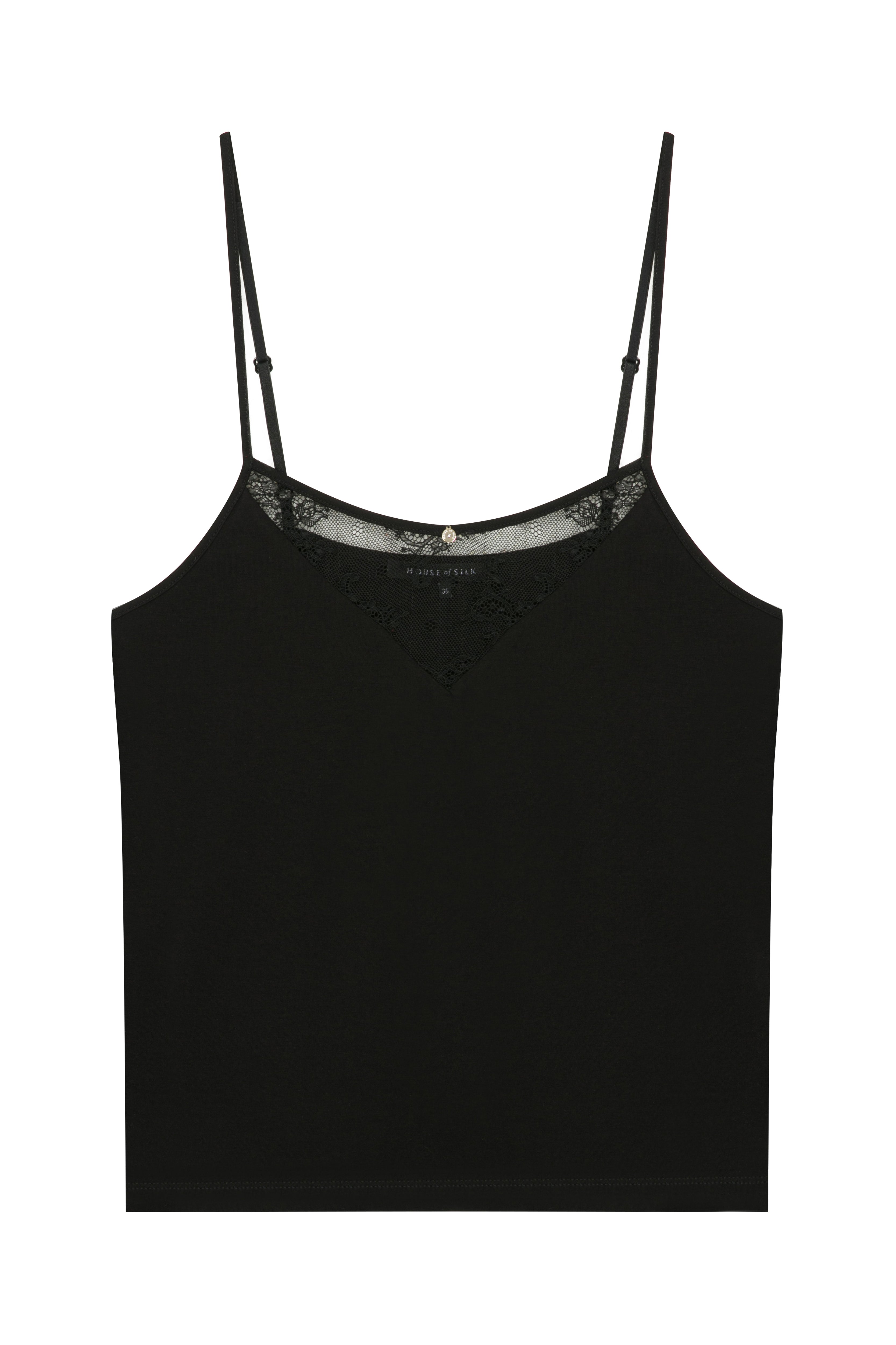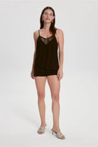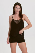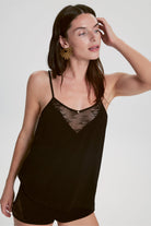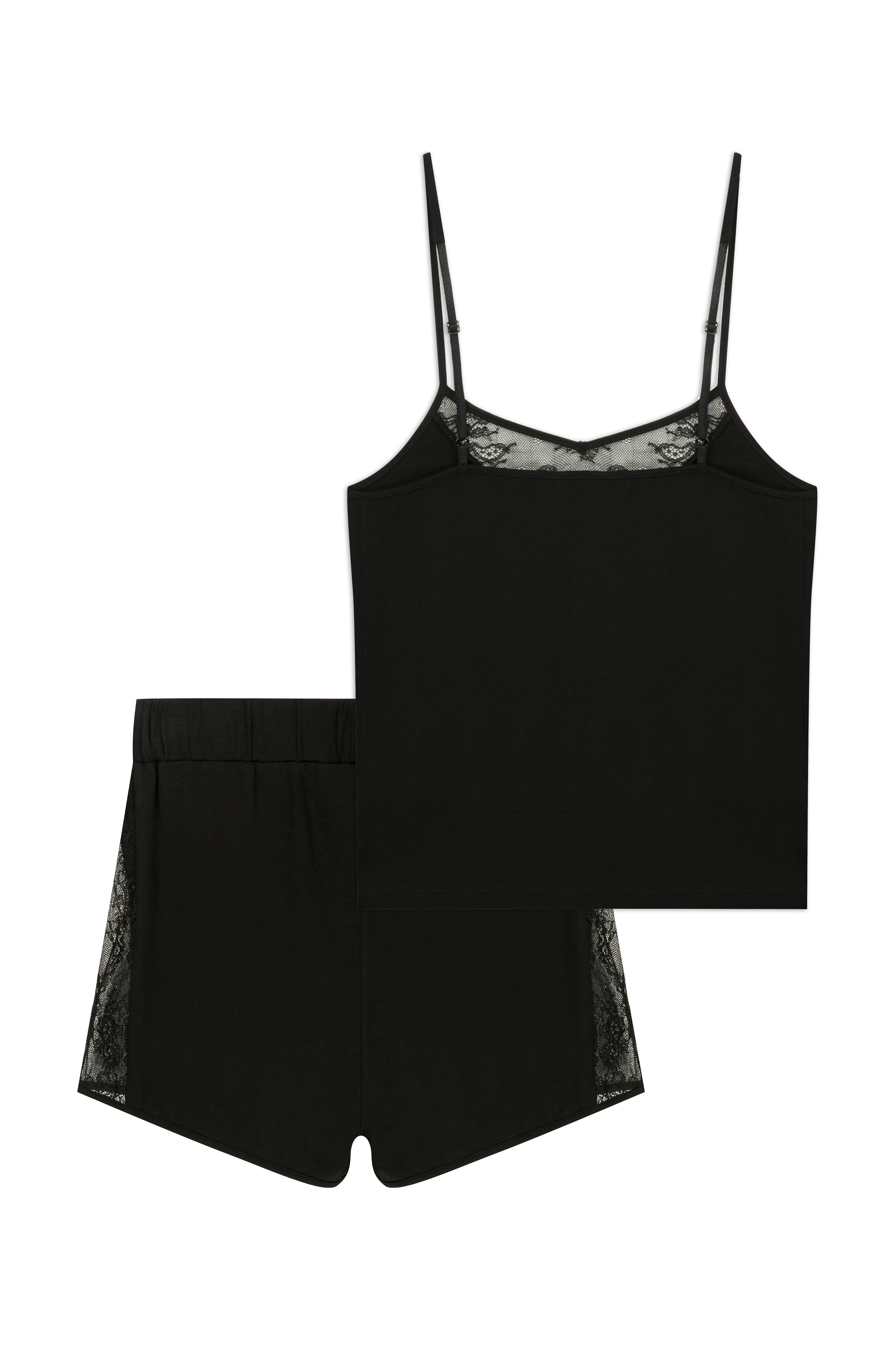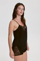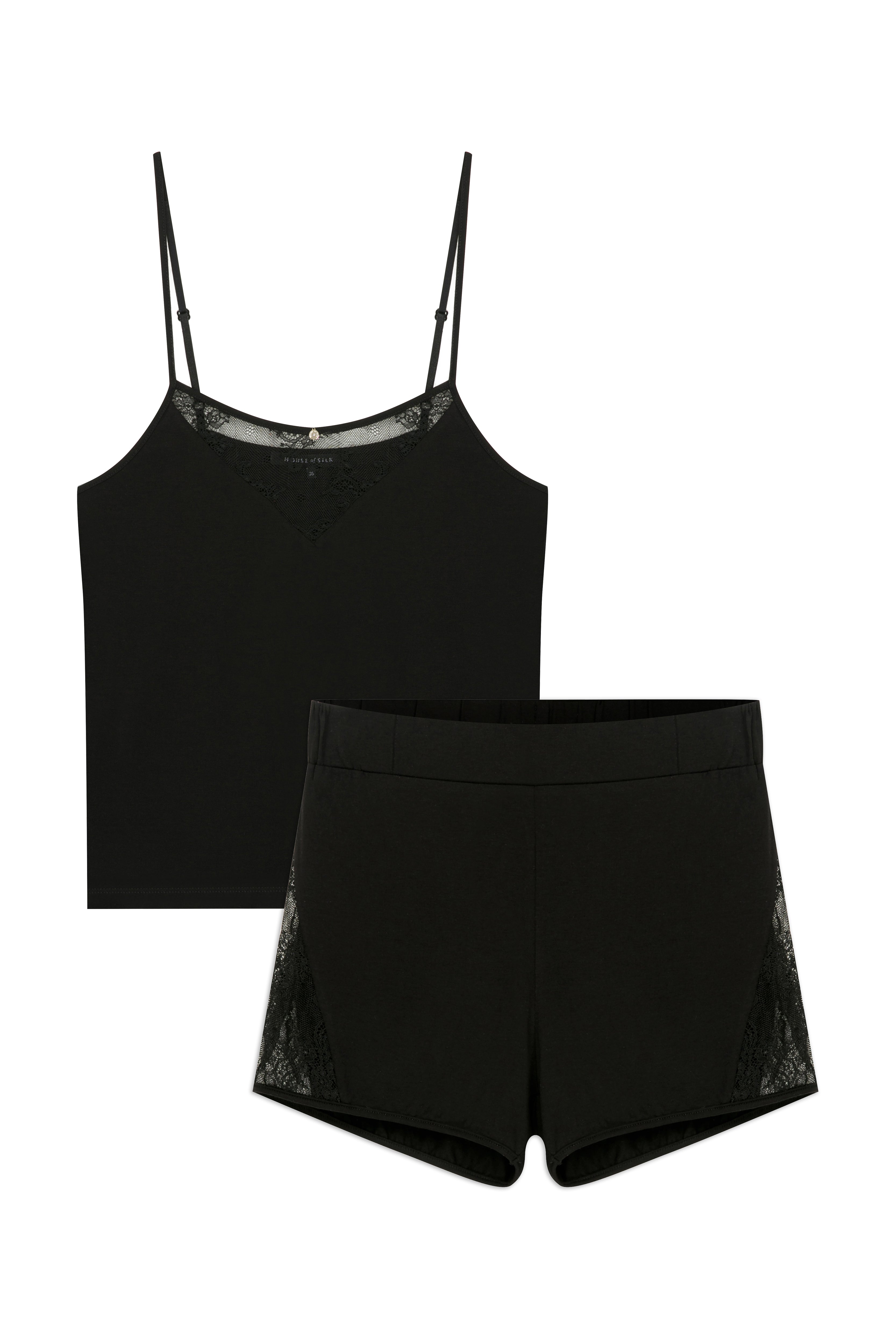 Helen Viscose Lace Neckline Detail Cami Shorts Set Black
