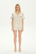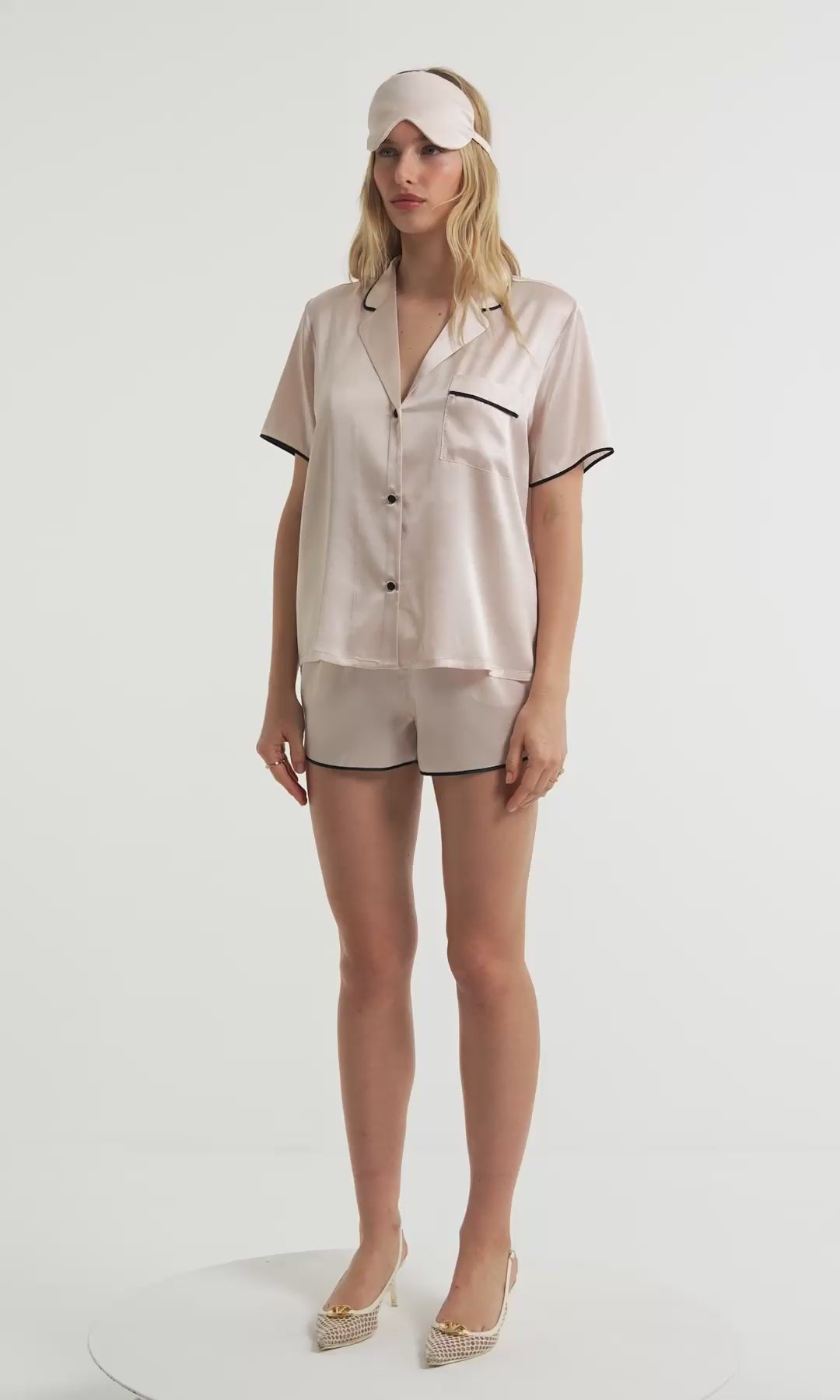 The warmth of champagne meets the softness of silk, this set will add a touch of sophistication to your every moment with its elegant bias details and elegance. Combining comfort and elegance, this design is the perfect example of luxury Home Wear.