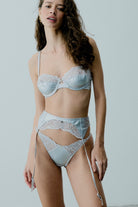 Discover the passion of vegan leather with Tina. For the first time in our collections, vegan leather meets our romantic lace details. Complete the set with Tina garter belt and thong.