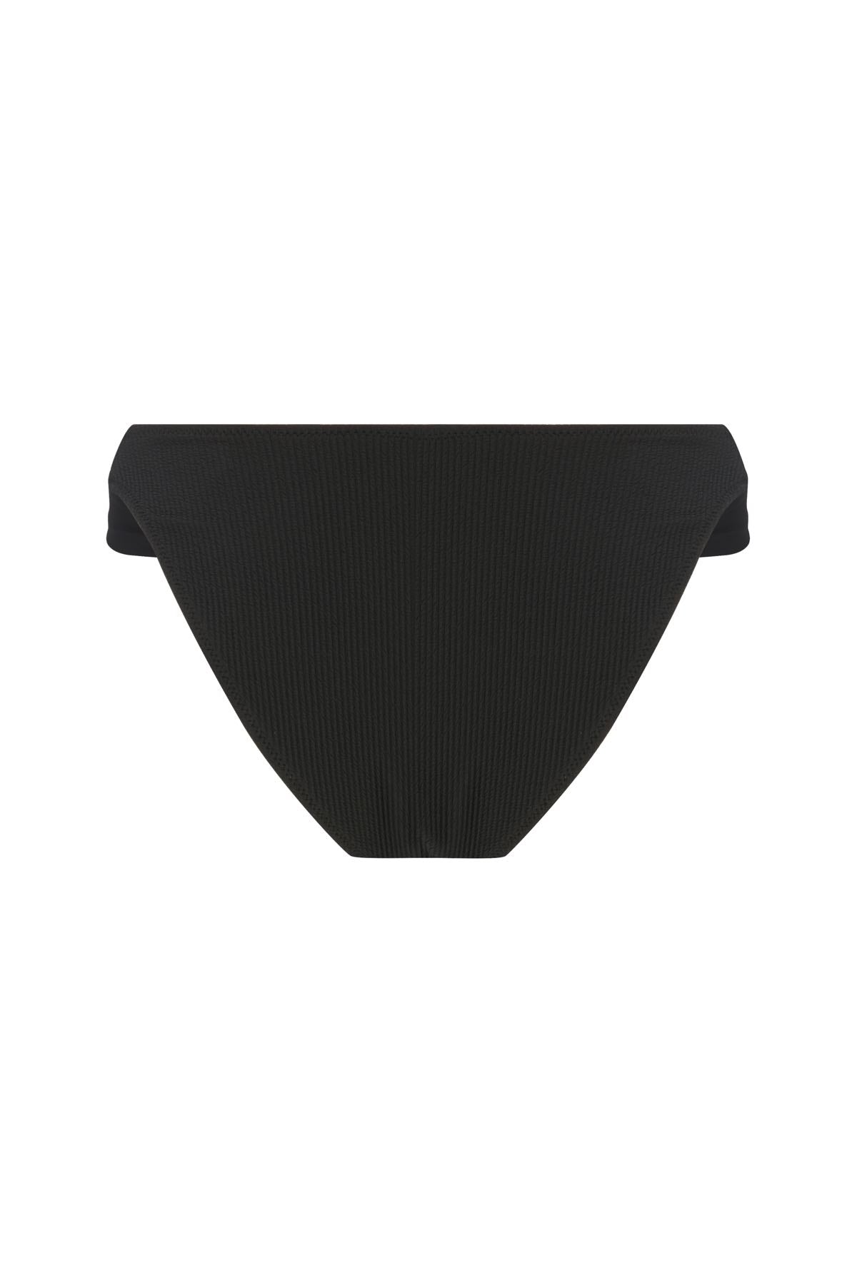 The Black Luna Bikini Bottom is an ideal option for those who prefer a simple and elegant style at the beach, featuring a harmony of different textures. It has a panty cut with fabric that hugs the body at the back. You can complete the look with the matching Luna Bikini Top.