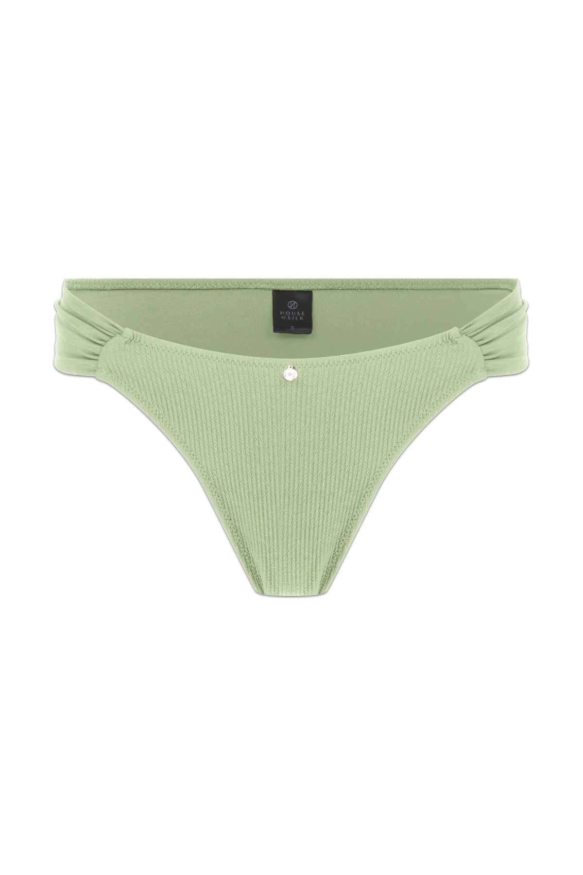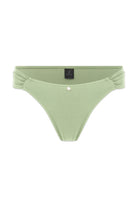 The Mint Green Luna Bikini Bottom is an ideal option for those who prefer a simple and elegant style at the beach, featuring a harmony of different textures. It has a panty cut with fabric that hugs the body at the back. You can complete the look with the matching Luna Bikini Top.
