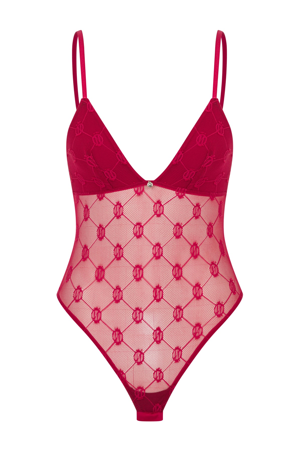 Mit dem auf elegante Spitze gestickten Monogrammmuster von House of Silk begleitet Sie der Kleo-Bodysuit, wenn Sie jeden Moment zu etwas Besonderem machen und sich auf dem Höhepunkt der Eleganz fühlen möchten.