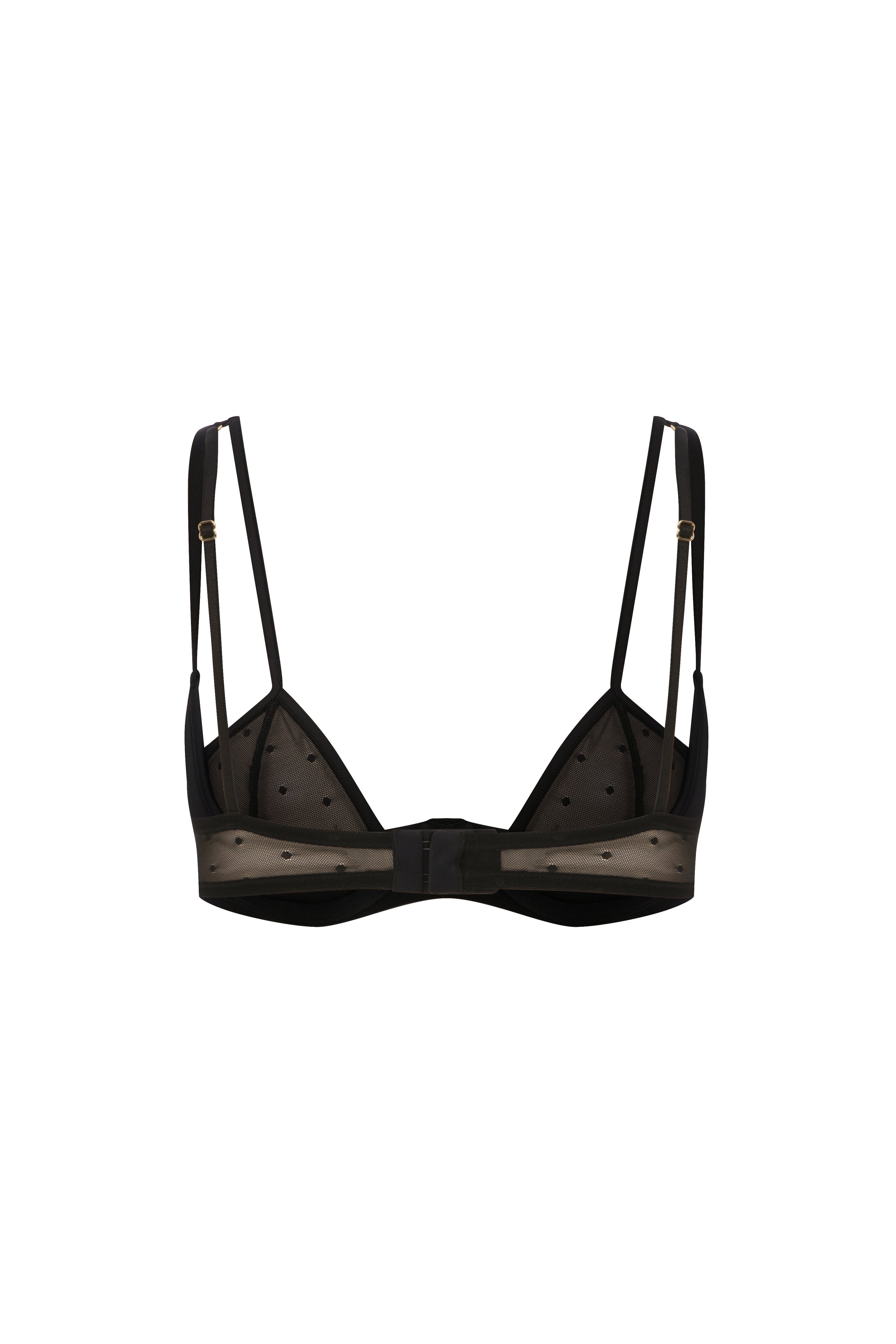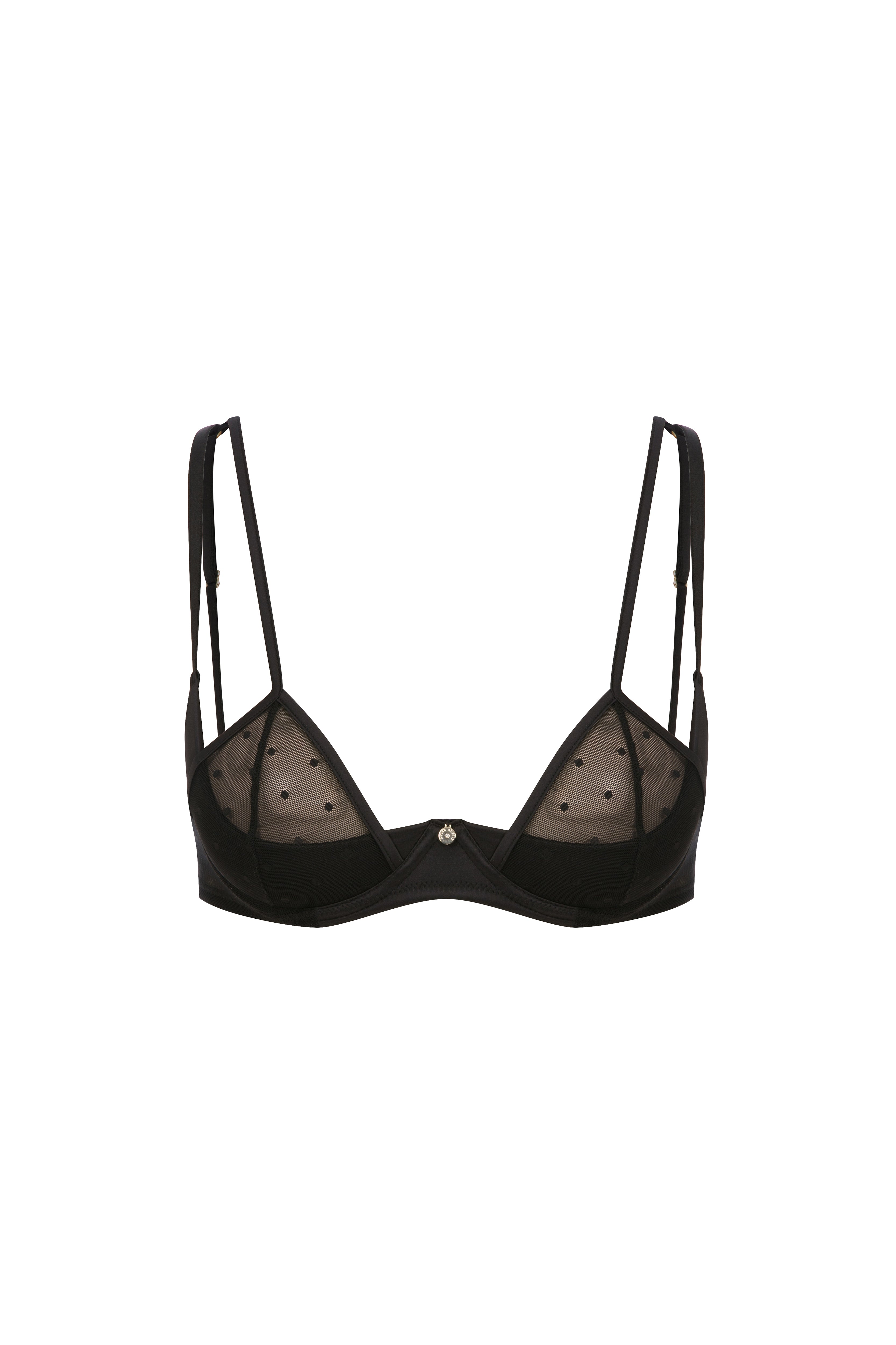 Matilda Push Up Bra Features supportive padding that enhances your shape. The straps joining at the shoulders elegantly highlight your shoulders and décolleté. Crafted with polka dot tulle and satin details, it offers a feminine and refined look. Complete your set with the matching Mathilda Ouvert Pantie.