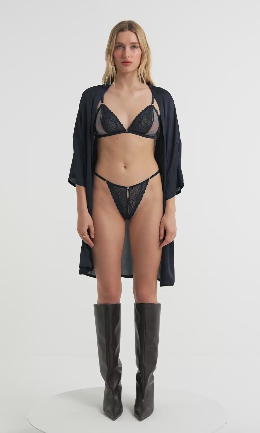 Der Neima-BH kombiniert mit seinem dreieckigen Bügeldesign Komfort und Eleganz. Mit seinen Spitzenspielen bietet er einen Art-Deco-Look und mit seinem versteckten Dekolleté vorne einen geheimnisvollen Glamour. Eine perfekte Wahl für alle, die eine bequeme und anspruchsvolle Option suchen. Vervollständigen Sie den Look mit dem passenden Neima-String.